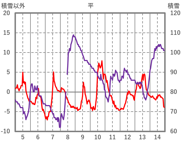 | 日 | 時 | 気温 | 降水 | 風向/風速 | 日照 | 積雪 | 降雪 |