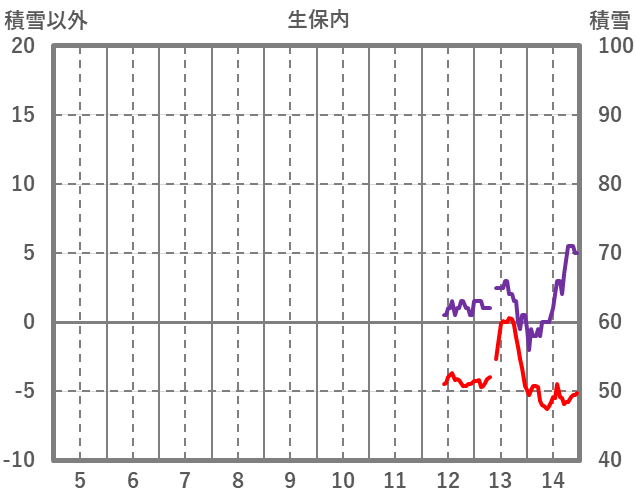 | 日 | 時 | 気温 | 降水 | 風向/風速 | 日照 | 積雪 | 降雪 |