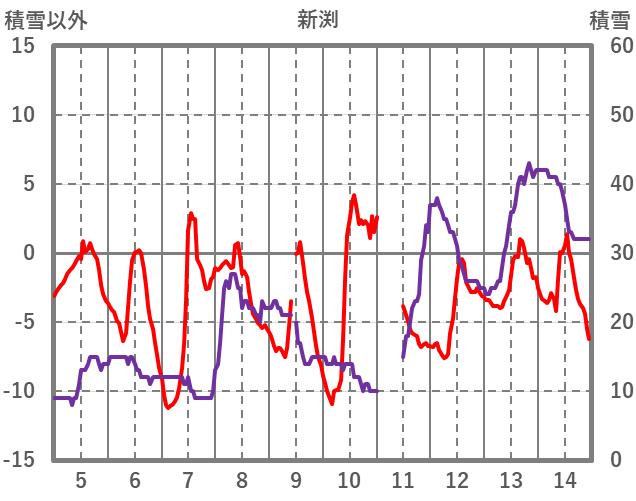 | 日 | 時 | 気温 | 降水 | 風向/風速 | 日照 | 積雪 | 降雪 |