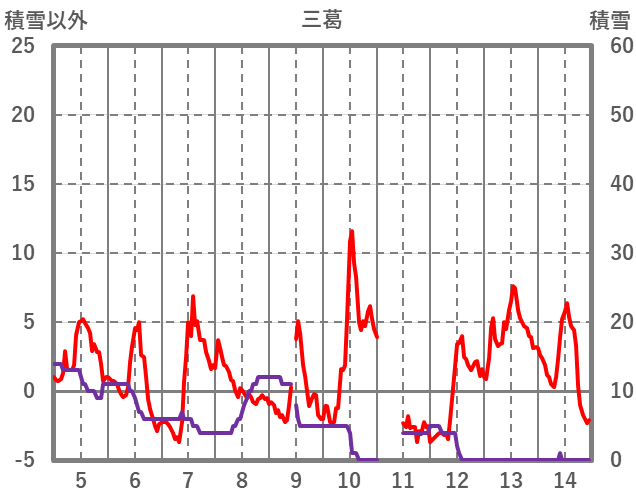 | 日 | 時 | 気温 | 降水 | 風向/風速 | 日照 | 積雪 | 降雪 |