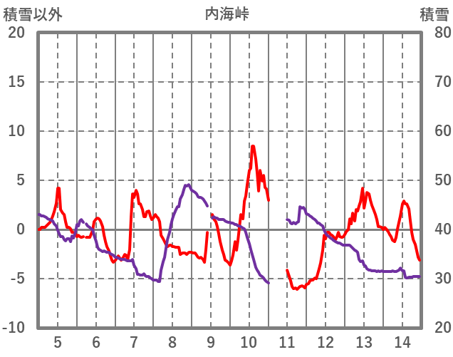 | 日 | 時 | 気温 | 降水 | 風向/風速 | 日照 | 積雪 | 降雪 |