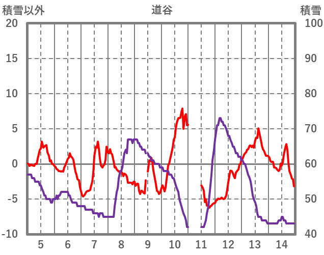 | 日 | 時 | 気温 | 降水 | 風向/風速 | 日照 | 積雪 | 降雪 |