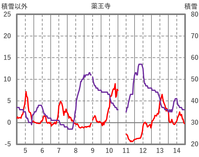 | 日 | 時 | 気温 | 降水 | 風向/風速 | 日照 | 積雪 | 降雪 |