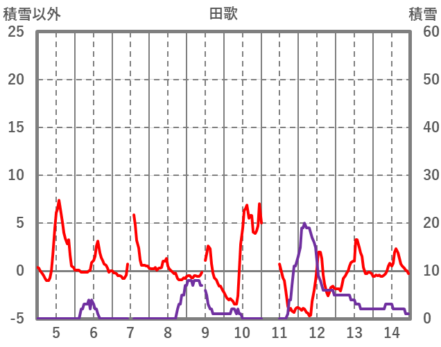 | 日 | 時 | 気温 | 降水 | 風向/風速 | 日照 | 積雪 | 降雪 |