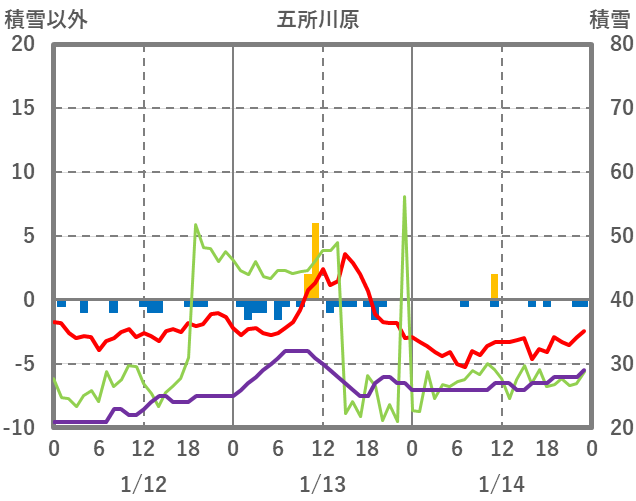 | 日 | 時 | 気温 | 降水 | 風向/風速 | 日照 | 積雪 | 降雪 |
