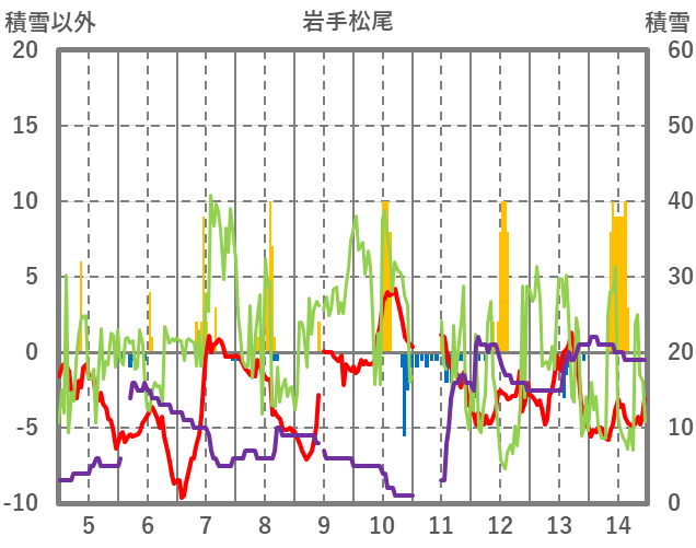 | 日 | 時 | 気温 | 降水 | 風向/風速 | 日照 | 積雪 | 降雪 |