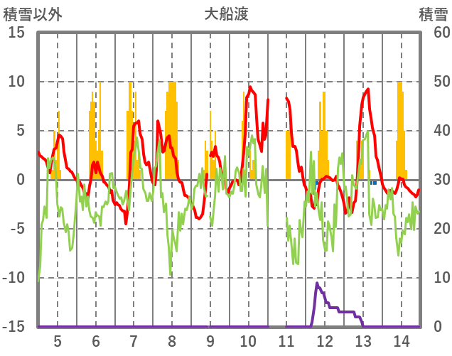| 日 | 時 | 気温 | 降水 | 風向/風速 | 日照 | 積雪 | 降雪 |