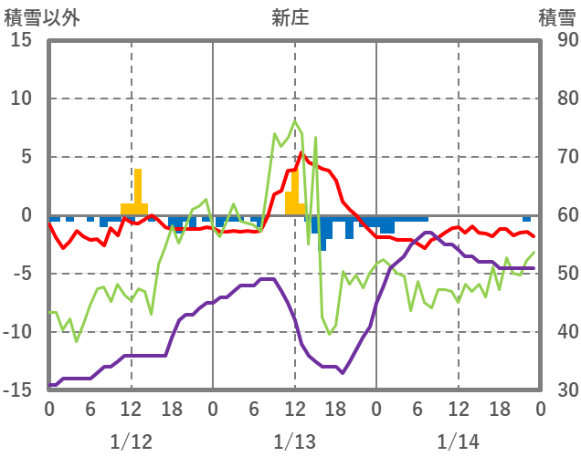 | 日 | 時 | 気温 | 降水 | 風向/風速 | 日照 | 積雪 | 降雪 |