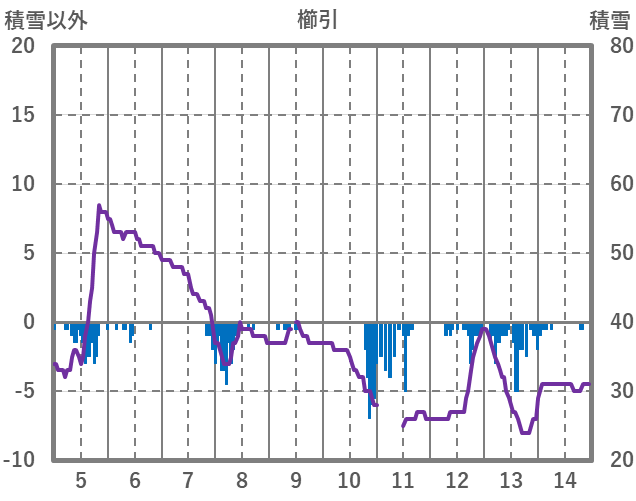 | 日 | 時 | 気温 | 降水 | 風向/風速 | 日照 | 積雪 | 降雪 |