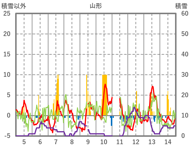 | 日 | 時 | 気温 | 降水 | 風向/風速 | 日照 | 積雪 | 降雪 |
