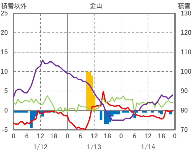 | 日 | 時 | 気温 | 降水 | 風向/風速 | 日照 | 積雪 | 降雪 |