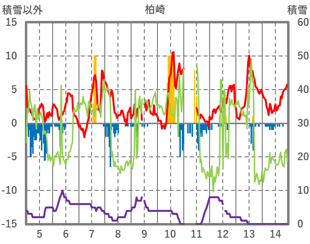| 日 | 時 | 気温 | 降水 | 風向/風速 | 日照 | 積雪 | 降雪 |
