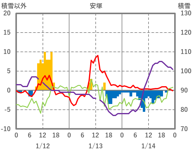 | 日 | 時 | 気温 | 降水 | 風向/風速 | 日照 | 積雪 | 降雪 |