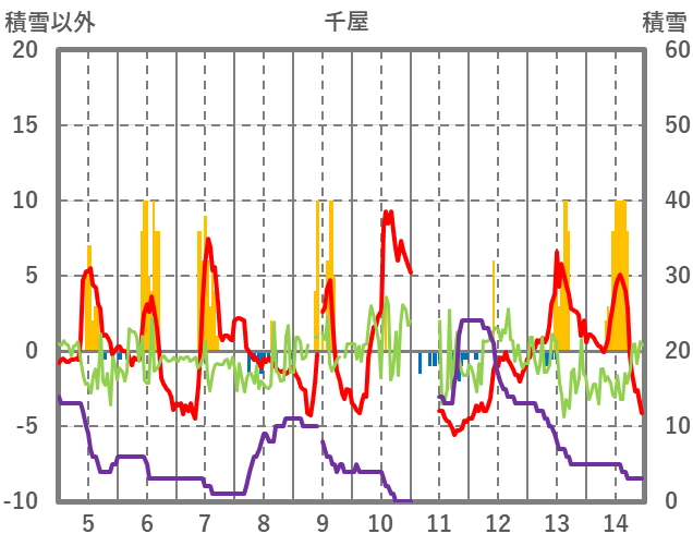 | 日 | 時 | 気温 | 降水 | 風向/風速 | 日照 | 積雪 | 降雪 |