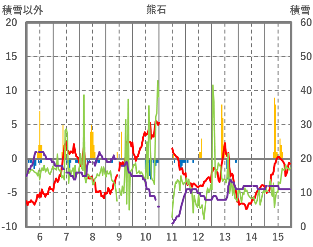 | 日 | 時 | 気温 | 降水 | 風向/風速 | 日照 | 積雪 | 降雪 |