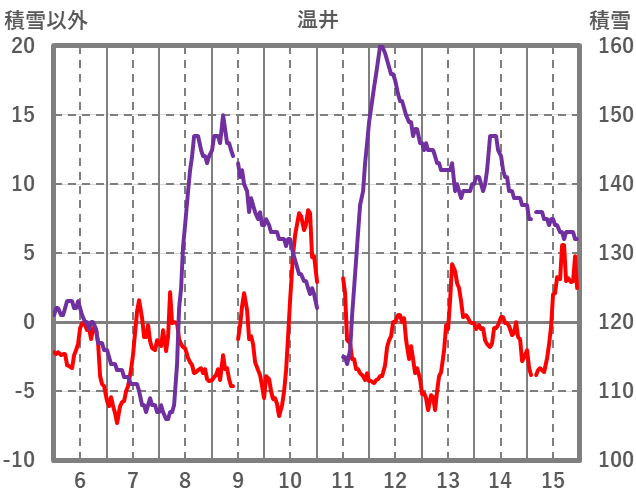 | 日 | 時 | 気温 | 降水 | 風向/風速 | 日照 | 積雪 | 降雪 |
