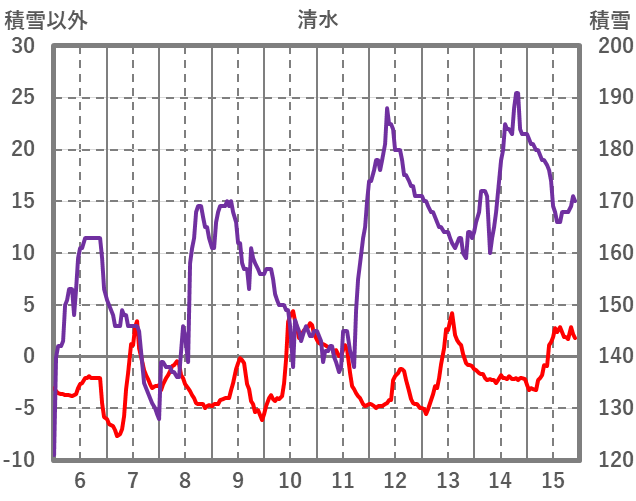 | 日 | 時 | 気温 | 降水 | 風向/風速 | 日照 | 積雪 | 降雪 |