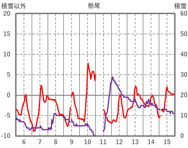 | 日 | 時 | 気温 | 降水 | 風向/風速 | 日照 | 積雪 | 降雪 |