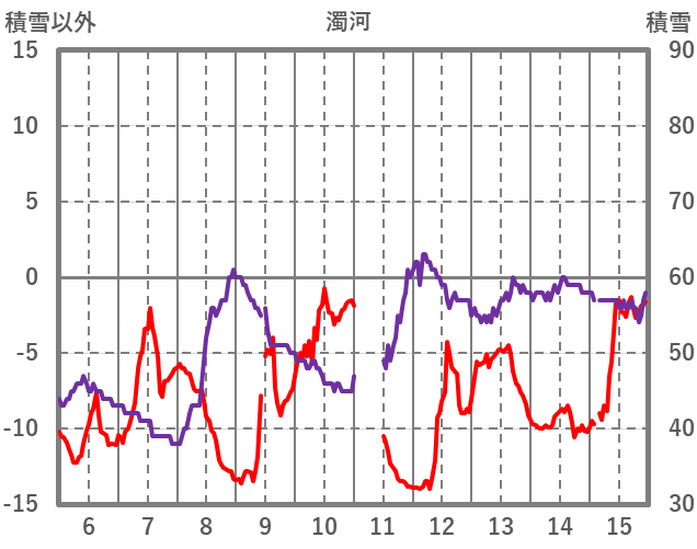 | 日 | 時 | 気温 | 降水 | 風向/風速 | 日照 | 積雪 | 降雪 |