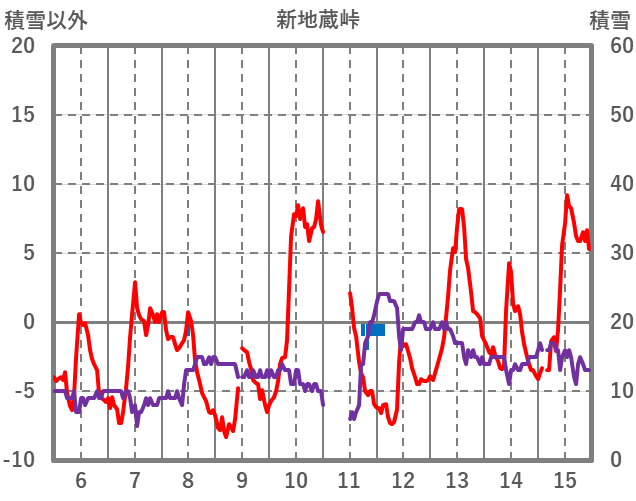 | 日 | 時 | 気温 | 降水 | 風向/風速 | 日照 | 積雪 | 降雪 |
