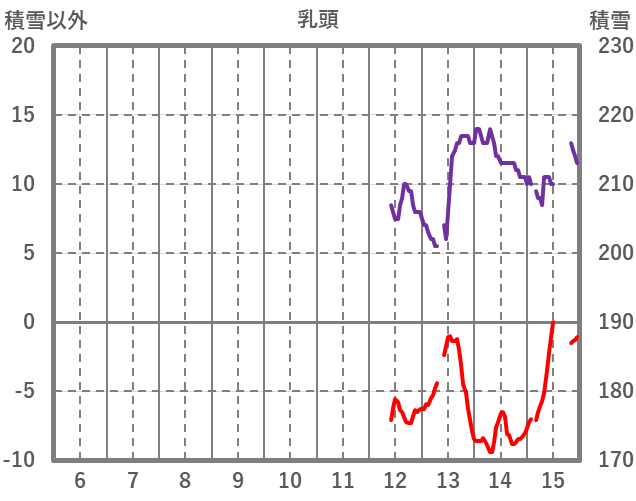 | 日 | 時 | 気温 | 降水 | 風向/風速 | 日照 | 積雪 | 降雪 |