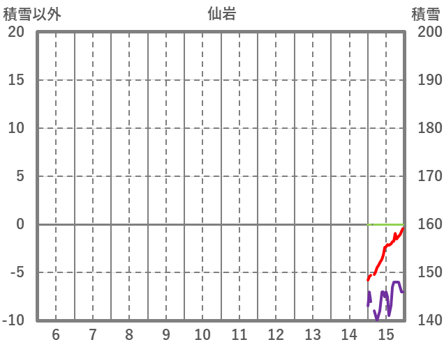 | 日 | 時 | 気温 | 降水 | 風向/風速 | 日照 | 積雪 | 降雪 |