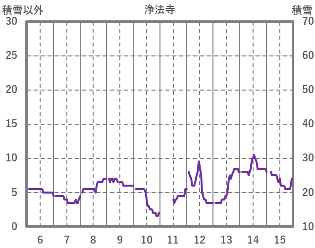 | 日 | 時 | 気温 | 降水 | 風向/風速 | 日照 | 積雪 | 降雪 |