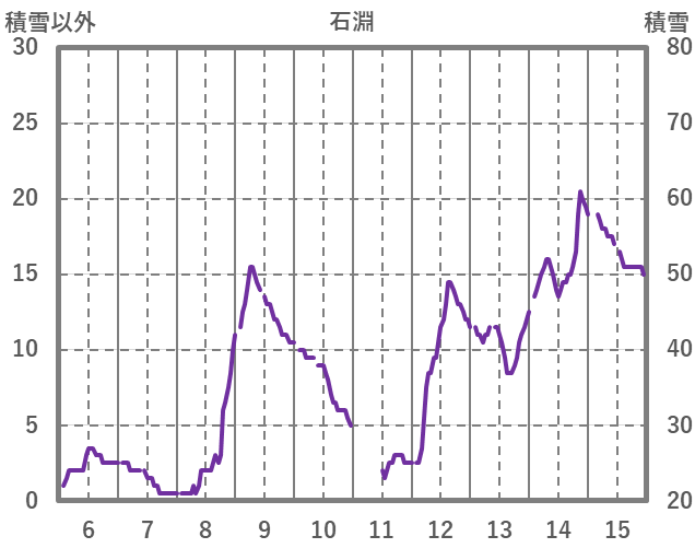 | 日 | 時 | 気温 | 降水 | 風向/風速 | 日照 | 積雪 | 降雪 |