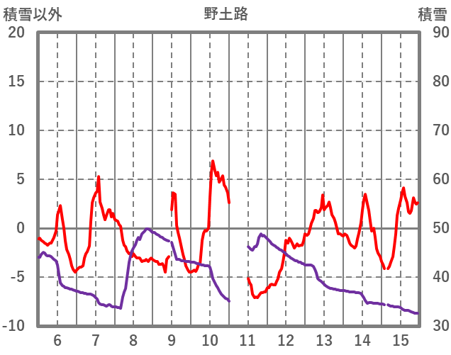 | 日 | 時 | 気温 | 降水 | 風向/風速 | 日照 | 積雪 | 降雪 |