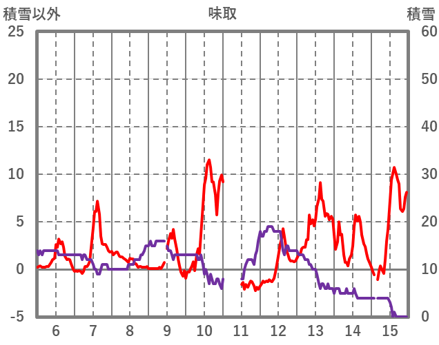 | 日 | 時 | 気温 | 降水 | 風向/風速 | 日照 | 積雪 | 降雪 |