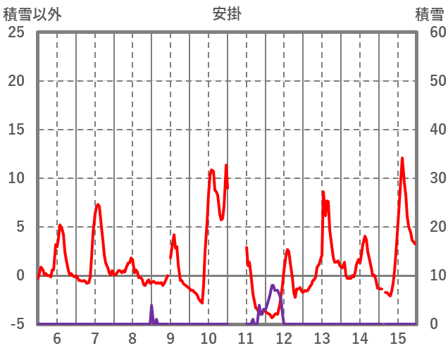 | 日 | 時 | 気温 | 降水 | 風向/風速 | 日照 | 積雪 | 降雪 |
