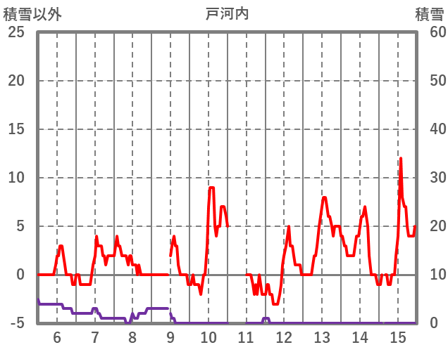 | 日 | 時 | 気温 | 降水 | 風向/風速 | 日照 | 積雪 | 降雪 |