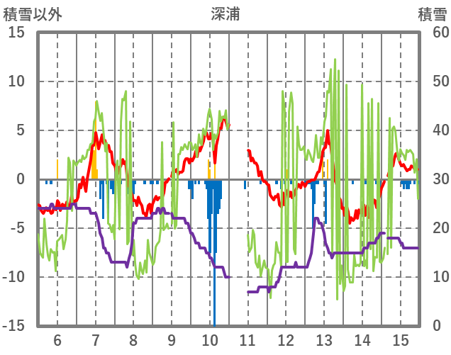 | 日 | 時 | 気温 | 降水 | 風向/風速 | 日照 | 積雪 | 降雪 |