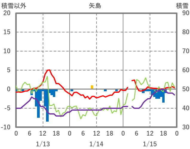 | 日 | 時 | 気温 | 降水 | 風向/風速 | 日照 | 積雪 | 降雪 |
