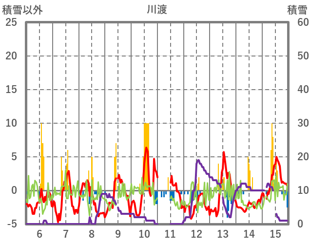 | 日 | 時 | 気温 | 降水 | 風向/風速 | 日照 | 積雪 | 降雪 |
