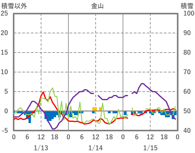 | 日 | 時 | 気温 | 降水 | 風向/風速 | 日照 | 積雪 | 降雪 |
