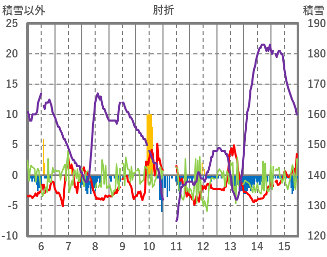 | 日 | 時 | 気温 | 降水 | 風向/風速 | 日照 | 積雪 | 降雪 |