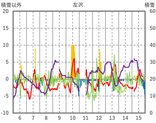 | 日 | 時 | 気温 | 降水 | 風向/風速 | 日照 | 積雪 | 降雪 |