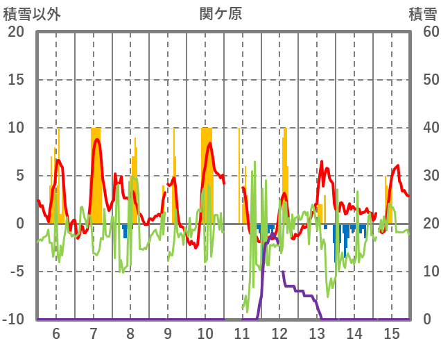 | 日 | 時 | 気温 | 降水 | 風向/風速 | 日照 | 積雪 | 降雪 |