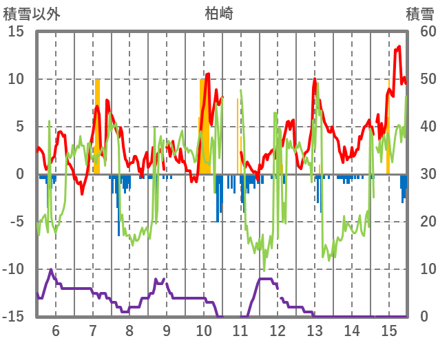 | 日 | 時 | 気温 | 降水 | 風向/風速 | 日照 | 積雪 | 降雪 |