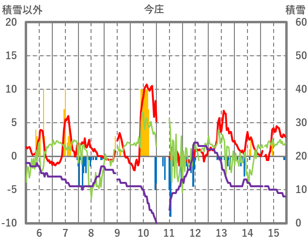 | 日 | 時 | 気温 | 降水 | 風向/風速 | 日照 | 積雪 | 降雪 |