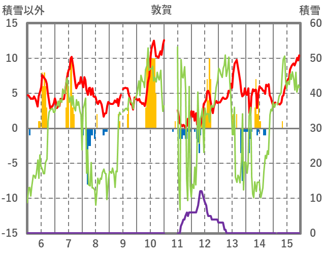 | 日 | 時 | 気温 | 降水 | 風向/風速 | 日照 | 積雪 | 降雪 |