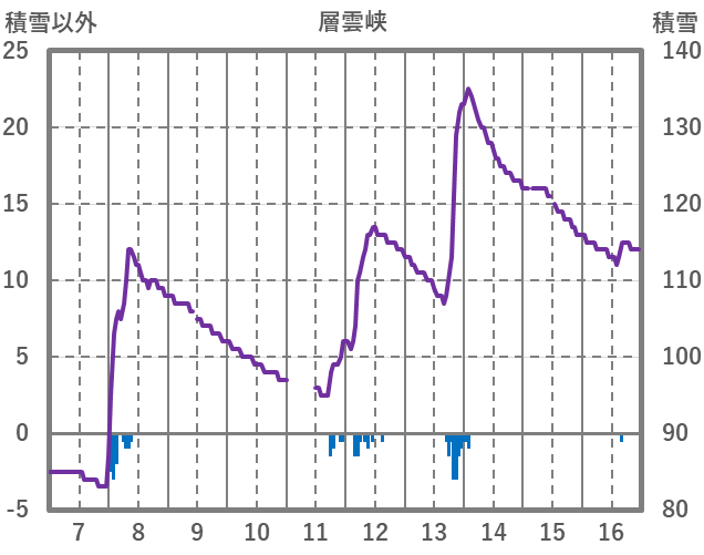 | 日 | 時 | 気温 | 降水 | 風向/風速 | 日照 | 積雪 | 降雪 |