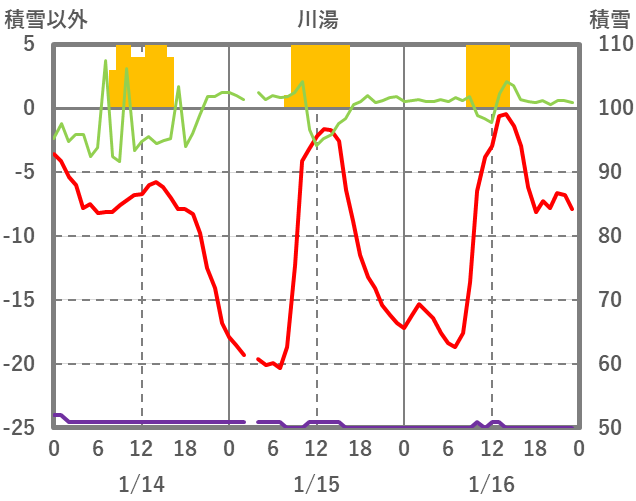 | 日 | 時 | 気温 | 降水 | 風向/風速 | 日照 | 積雪 | 降雪 |