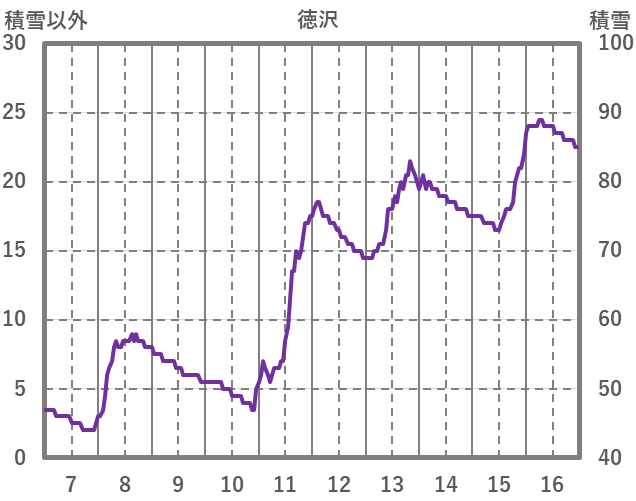 | 日 | 時 | 気温 | 降水 | 風向/風速 | 日照 | 積雪 | 降雪 |