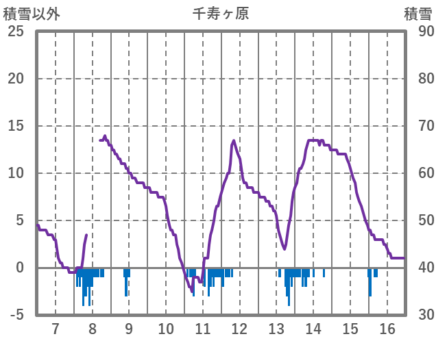 | 日 | 時 | 気温 | 降水 | 風向/風速 | 日照 | 積雪 | 降雪 |