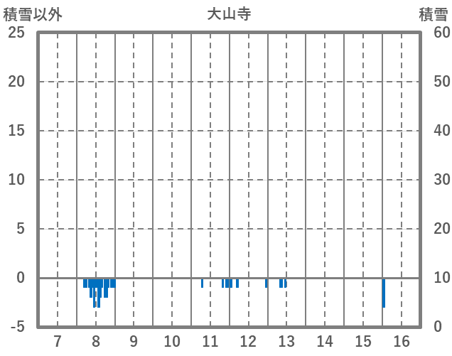 | 日 | 時 | 気温 | 降水 | 風向/風速 | 日照 | 積雪 | 降雪 |