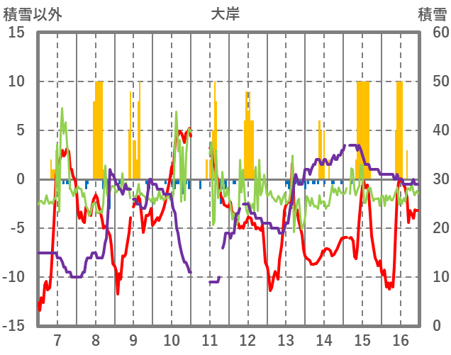 | 日 | 時 | 気温 | 降水 | 風向/風速 | 日照 | 積雪 | 降雪 |