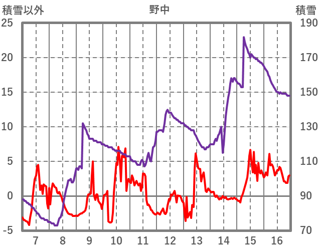 | 日 | 時 | 気温 | 降水 | 風向/風速 | 日照 | 積雪 | 降雪 |