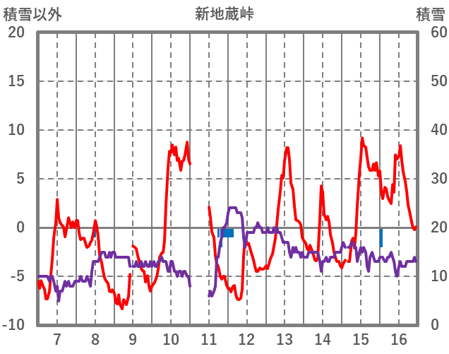 | 日 | 時 | 気温 | 降水 | 風向/風速 | 日照 | 積雪 | 降雪 |